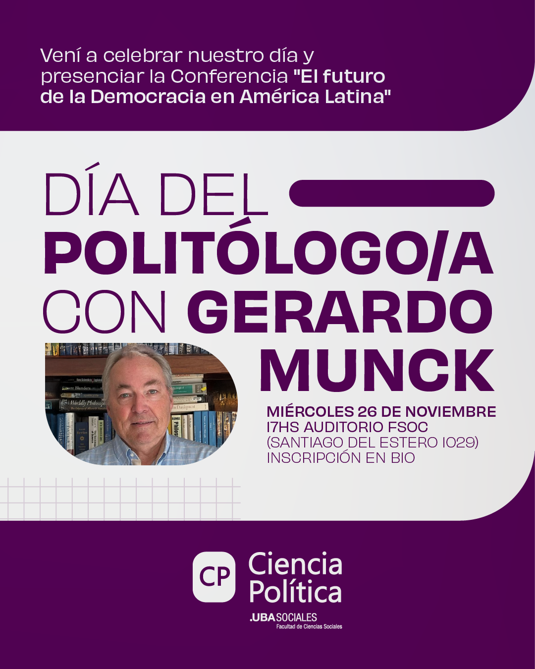 Nos complace invitarlas/os a la celebración del Día del Politólogo/a, que tendrá lugar el miércoles 26 de noviembre a las 17:00 hs.